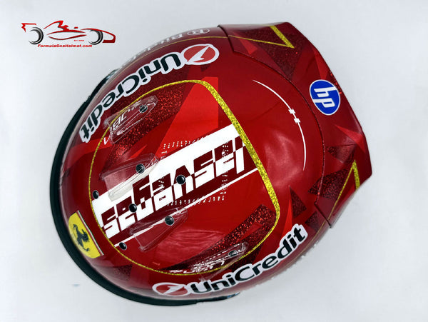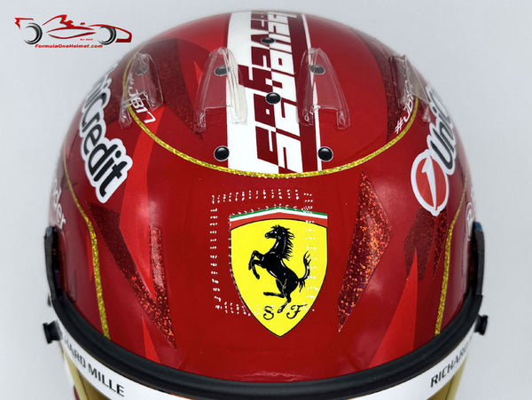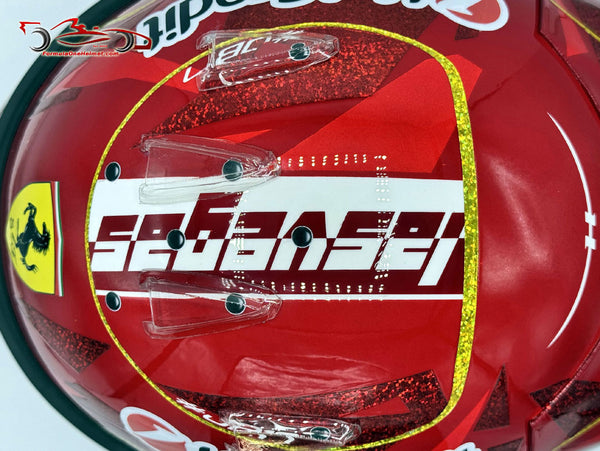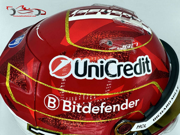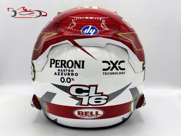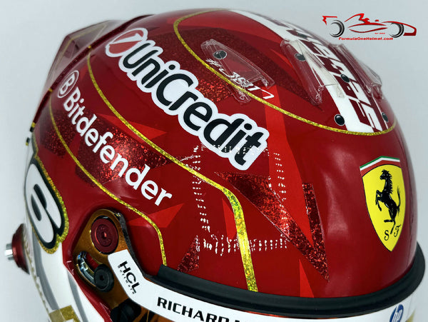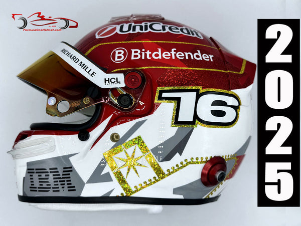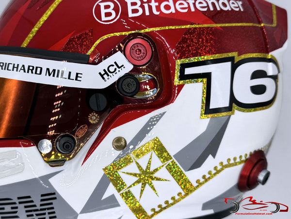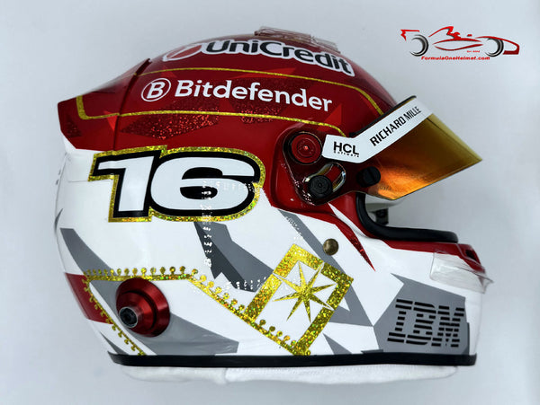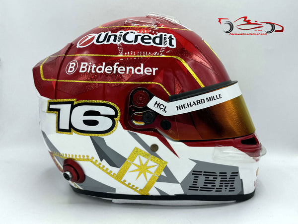 This helmet is an exact replica of the helmet worn by Charles Leclerc in the 2025 Las Vegas GP